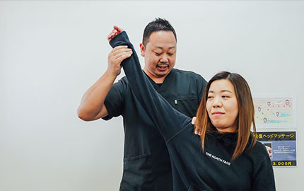 また、肩甲骨の動きが悪くなる事も原因の一つとされる為、ひらの整骨院では当院独自のストレッチや関節矯正、筋肉の緊張の緩和マッサージ、肩甲骨の周囲に着くインナーマッスル(腱板)のトレーニング等の施術を行います。